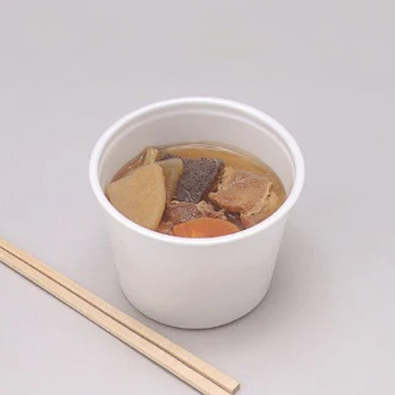 原材料:野菜(大根(国産)、人参、じゃが芋、ごぼう、玉ねぎ)、豚肉、こんにゃく、味噌(大豆を含む)、みりん、かつお節エキス(小麦を含む)、肉エキス/調味料(アミノ酸等)、酸化防止剤(ビタミンC)