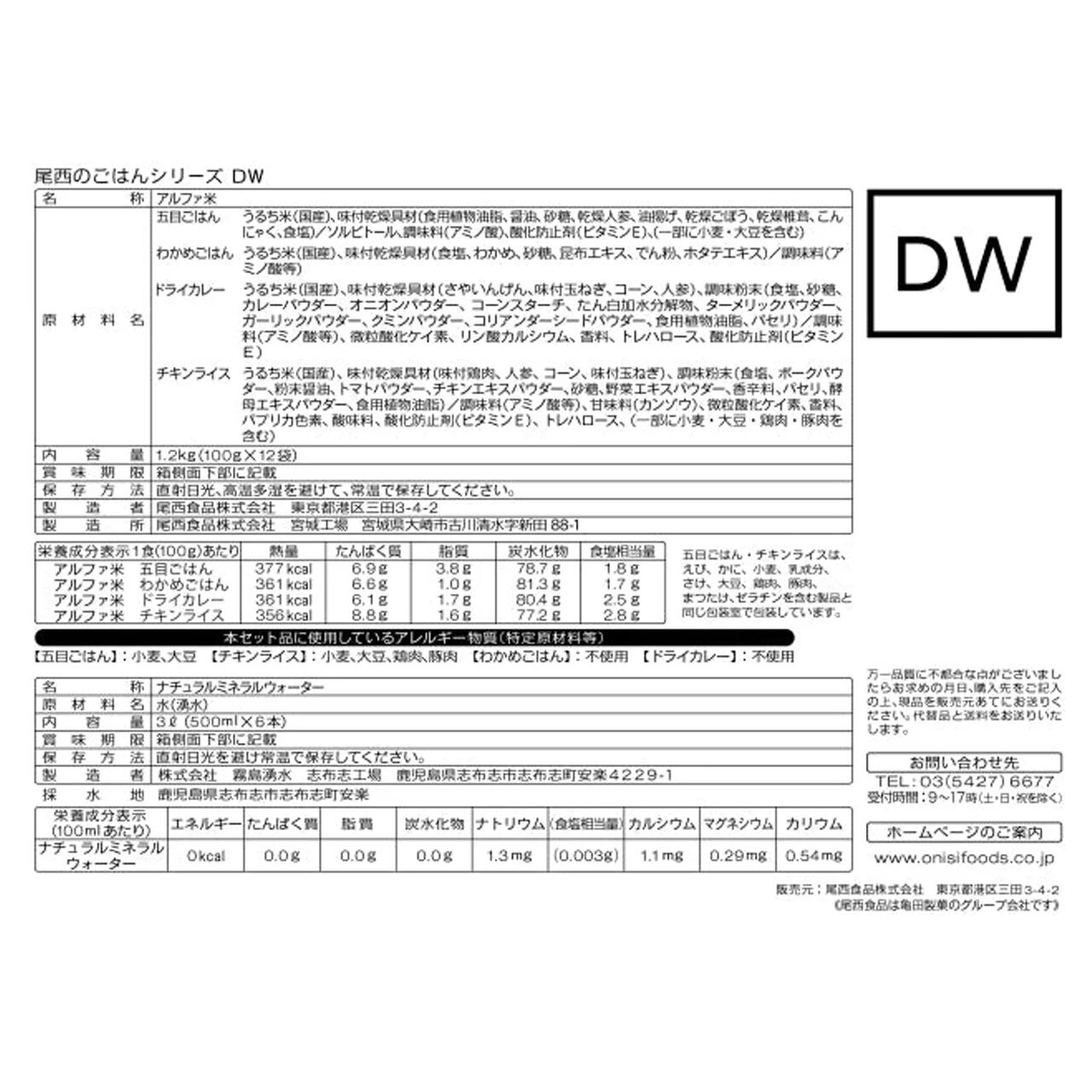 【尾西のごはんシリーズDW(和風洋風組合せ12袋、保存水6本入)】